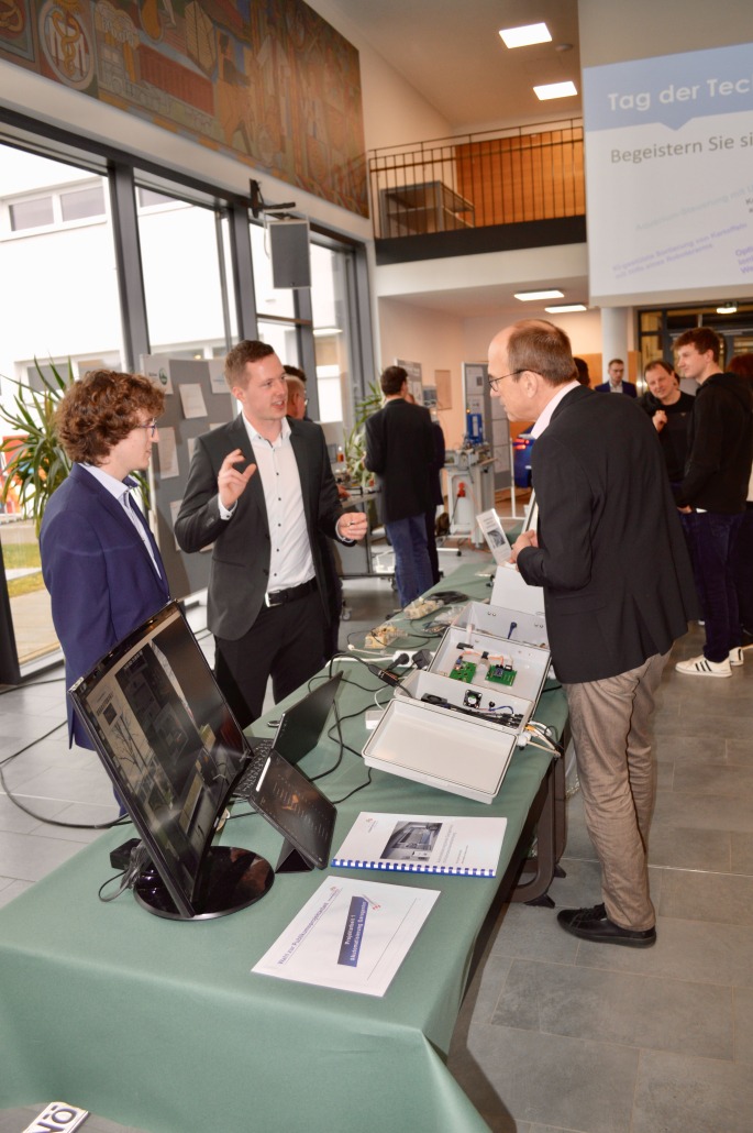 Darüber hinaus bot die Veranstaltung auch die Gelegenheit mit Industrieunternehmen aus der Region ins Gespräch zu kommen. Die Firmen, die selbst zugeben mussten, dass sie bisher selbst noch wenig bis keine KI-Systeme im Einsatz haben, waren überrascht, dass Nördlingen nun eine so zukunftsweisende Fachrichtung anbietet. Sie überlegten, in welchen Unternehmensbereichen sie diese Techniker/-innen in zwei Jahren einsetzen können.