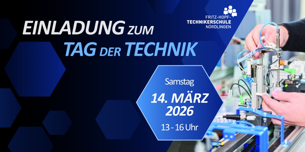 Am Samstag, 14. März 2026 öffnen wir von 13 bis 16 Uhr unsere Türen zu unserem diesjährigen Tag der Technik und Sie sind herzlich eingeladen! Kommen Sie vorbei und lassen Sie sich von den vielseitigen und innovativen Projektarbeiten unserer Schüler beeindrucken. Kommen Sie mit uns ins Gespräch und genießen Sie das Rahmenprogramm.